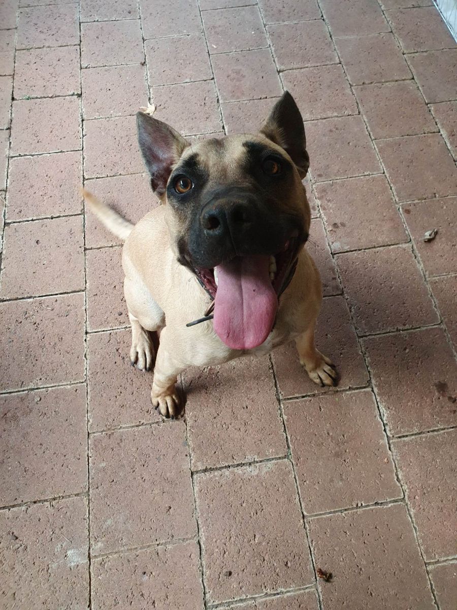 He's a relatively fast learner, and is food (and tummy rubs) driven, he is mastering the art of drop and and place, although he can get easily distracted. He loves being with humans and would prefer to be with them at all times, but is also happy to laze out in the sun if he's got to stay home on his own, although he will chase birds and the wind so we assume he wouldn't be cat / pocket pet friendly. He hasn't shown any signs for being destructive although he will chew doggo toys and potentially Teddies and other kids toys if he's given access to them. Oh and he loves balls.