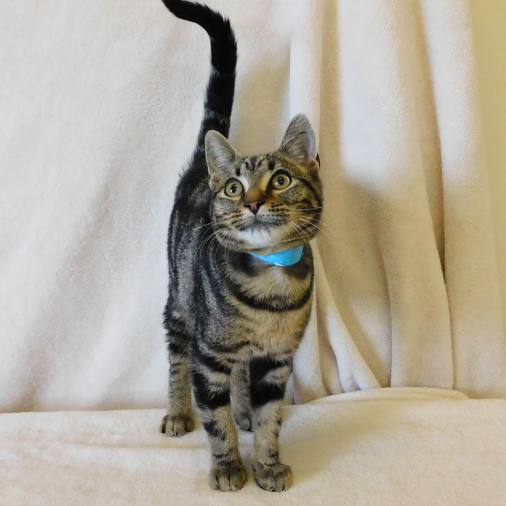 Ralphy friendly personality makes it easy for him to make new acquaintances. He loves people of all ages and never hesitates to show his affection through gentle head-butting and purring. Ralphy is always ready for a good cuddle session or a quick game of tag and will be sure to keep you entertained! If you're looking for a playful companion with lots of love to give, then Ralphy is the perfect pet for you!