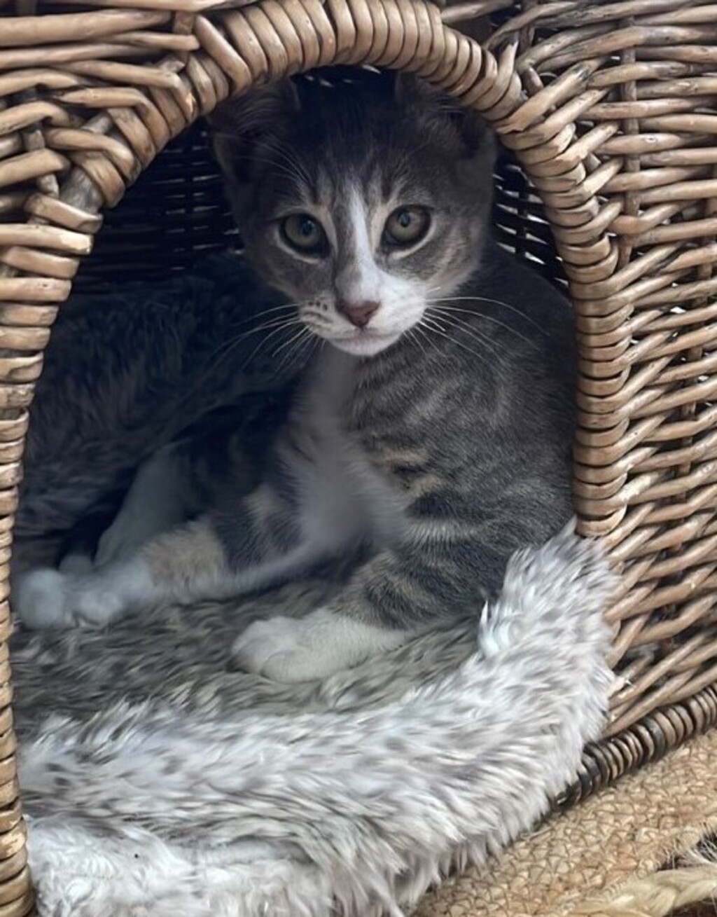 Looking for an energetic and entertaining kitten? Henry Higgins will fit very well. This active boy is a handsome soft grey boy who loves playtime and also snuggles on the lounge. He's happy to have a supervised walk outside in the garden wearing his harness and when he's worn out from exploring, he'll fall asleep in a cozy spot with you back inside.