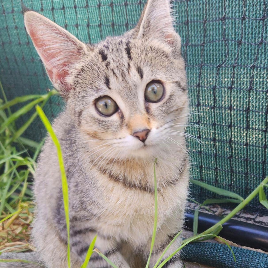 Meet Rosalie! Who is a sweet young kitten who's personality is just starting to shine through. Her heavily pregnant mum came into SAFE's care and Rosalie and her six siblings were born that day. Rosalie is a sweet, gentle girl who loves to play with her toys and her siblings. She will climb up onto you for a snuggle but then is happy to curl up next to you, on her favourite pillow, for a snooze. Rosalie is interested in the resident dogs and cats and has bravely introduced herself to them through the outdoor run fences.