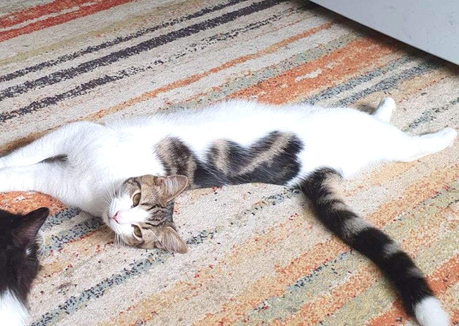Little Trifle was born on the street with his brother Truffle. His mother Ava taught her sons well to be wary of humans so by the time we bought them into care at 12 weeks they were well trained to run & hide. We saw something in them though that made us feel they deserved a chance & their wonderful carers have worked hard to bring them out of their shells & it's been so worth the effort!