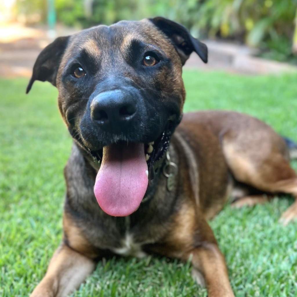 Boomer was timid at first and boisterous, but after about one and a half weeks he adjusted to being in an enclosed yard and taking instructions from his new carers.