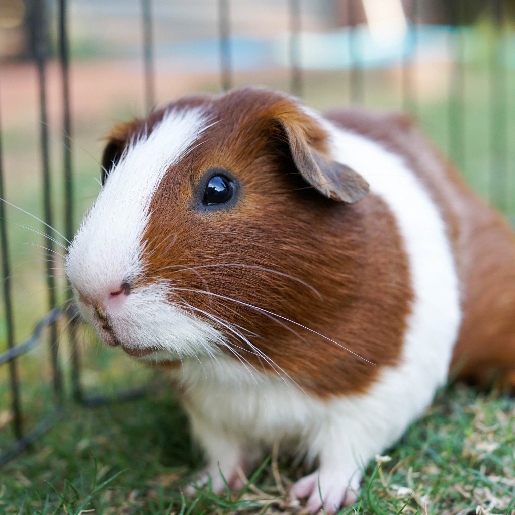 Hi! I'm Checkers, Hey you! I'm Checkers and I'm quite the busy guinea pig. I came to SAFE a little on the thin side with a few sores from mites. But, I've had treatment and I'm on the mend. My fur is growing back nicely and I'm putting on weight. I'm quite the conversationalist and if I feel you haven't given me enough attention today, I will certainly tell you about it from the tops of my lungs! I love to eat and eat. I love variety, celery, carrots, tomato, baby spinach... Mmm, I could discuss food all day! I'm cuddly, chatty and I don't take up much room. The perfect pet for a family who wants someone to have conversations with.