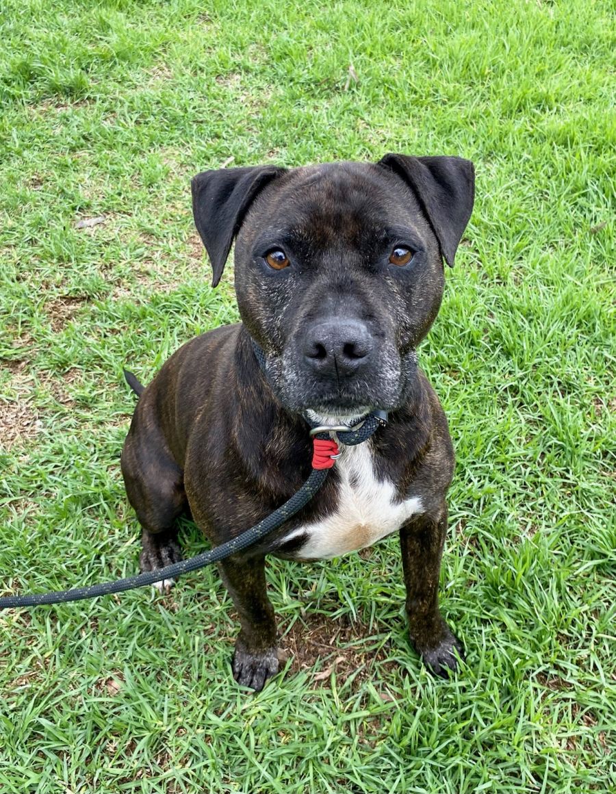 Tyson is a 7 year old Staffordshire Bull Terrier with a cool and collected personality. He loves to spend time in the sun or snuggled up in his favorite blanket, but can still be quite active when the mood strikes. Tyson is well-behaved and knows how to obey commands such as sit, stay, and shake paws.