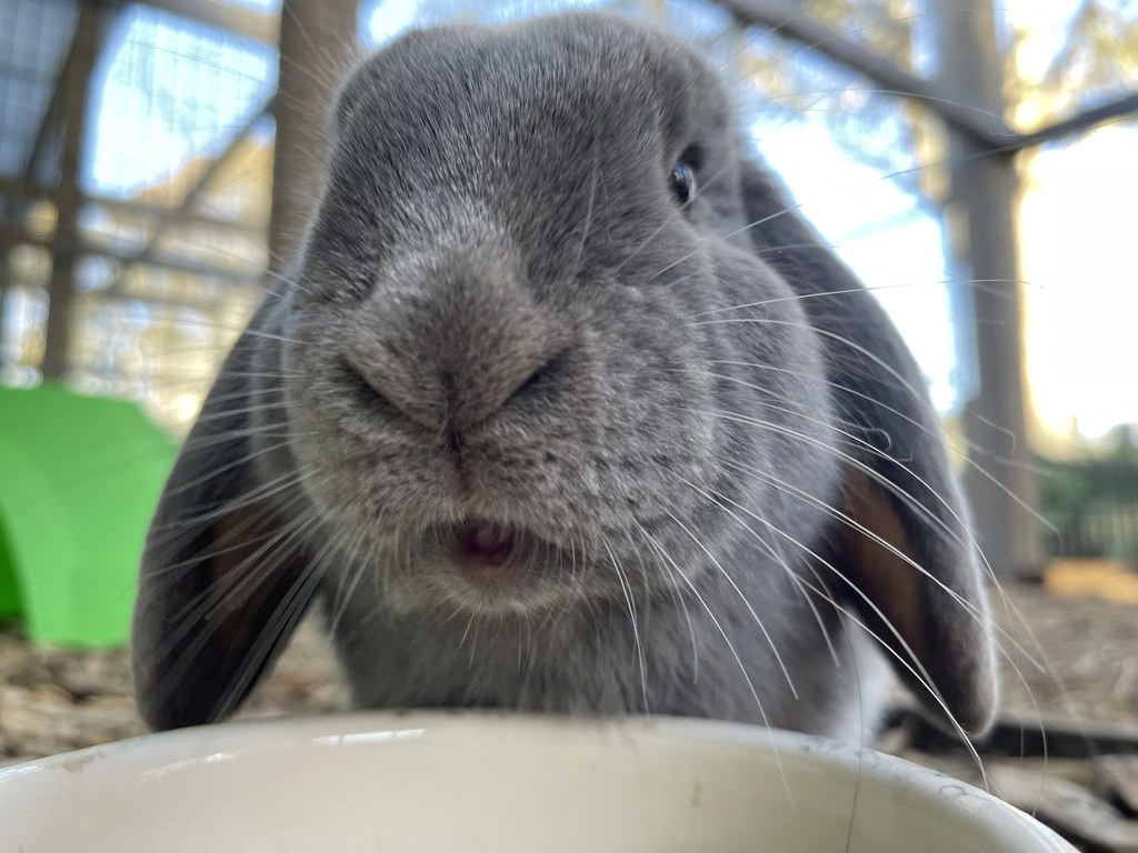 Susie came into our care quite sickly and skinny with no food in her belly. She was found with 2 other rabbits without food, water and out in the heat of the day. Luckily, she was rescued before any more harm was done. She has now put on weight and is looking so much healthier and happier. Susie is the last of her family to be rehomed and she waits ever so patiently for that special meet and greet she witnessed her siblings complete and go home to. Despite humans letting her down in the past, she has remained interested in people and loves nothing more than approaching you to take food from your hands. Susie has even learned to walk onto the scales by herself (with some food encouragement of course) for her weekly weighing!