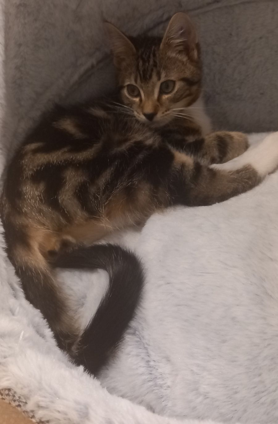 Max is an energetic and cheeky kitten. He loves to explore and play, but he can also be very sweet and gentle when needed. Maxs loves to take naps too, especially when he can curl up on your chest for some cozy sleep time. He is a real charmer with his bright eyes, soft fur and cuddly purrs.