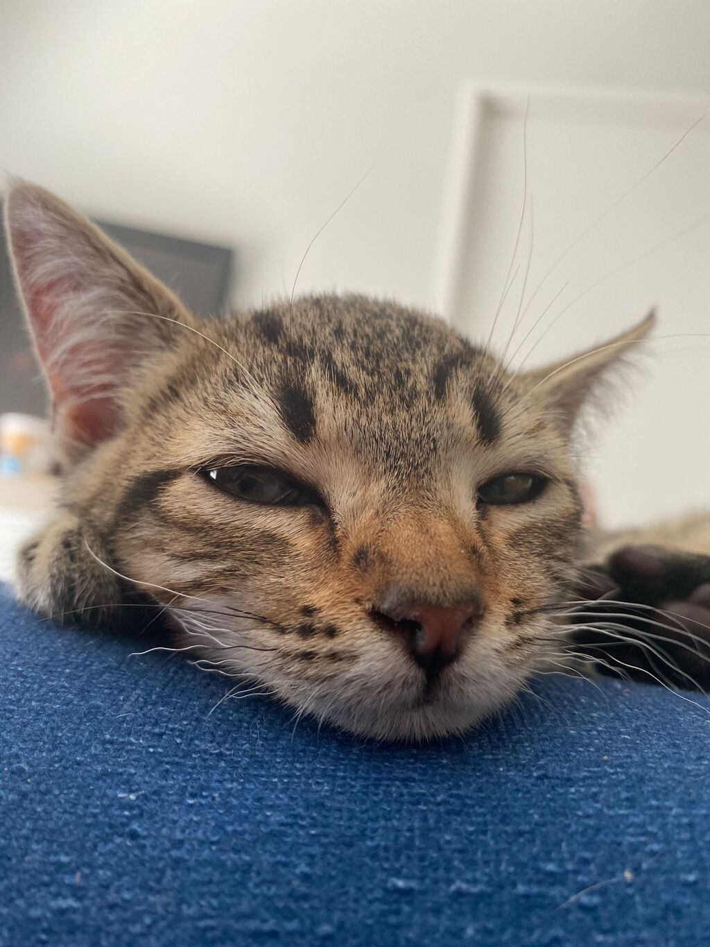Steve purrs the most out of his litter, he loves a cuddle. Even on his first day in foster care he was meowing for cuddles and slept on his foster carer's lap. He will seek out cuddles every day. Steve is a very friendly kitten, who loves to play and he would make the perfect kitten for any loving and caring home.