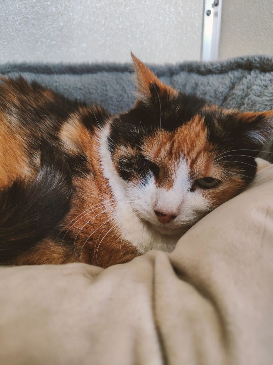 Rachel would likely prefer to be the only animal in her new home, however, may be able to live with another laid-back cat with slow introductions.