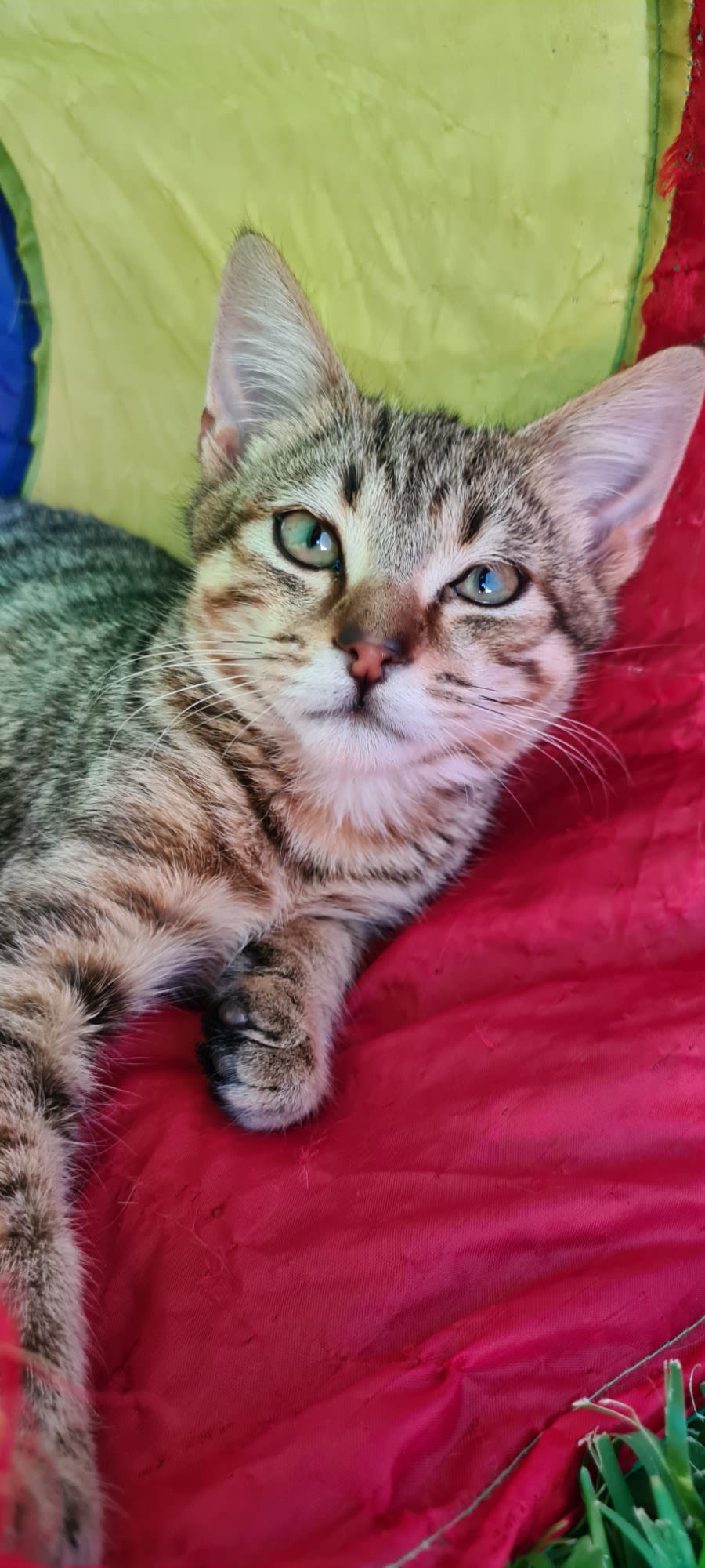 Rocket was found in a skip bin when he was only about 10 weeks old. We believe he got in there to get some food scraps and then couldn't get back out. We don't think he had any contact with humans at all before coming into care. It took him quite some time to trust humans and it still takes him time to trust new people. He earnt his name Rocket as he was so terrified he would take off like a Rocket at the sight of a person. Rocket has come a long way and now can be handled and patted and enjoys human companionship. He loves his food and the best way to win him over is with treats. He loves other cats and has made many cat friends while in care. Due to his timid nature he would be best suited to a home without small children.