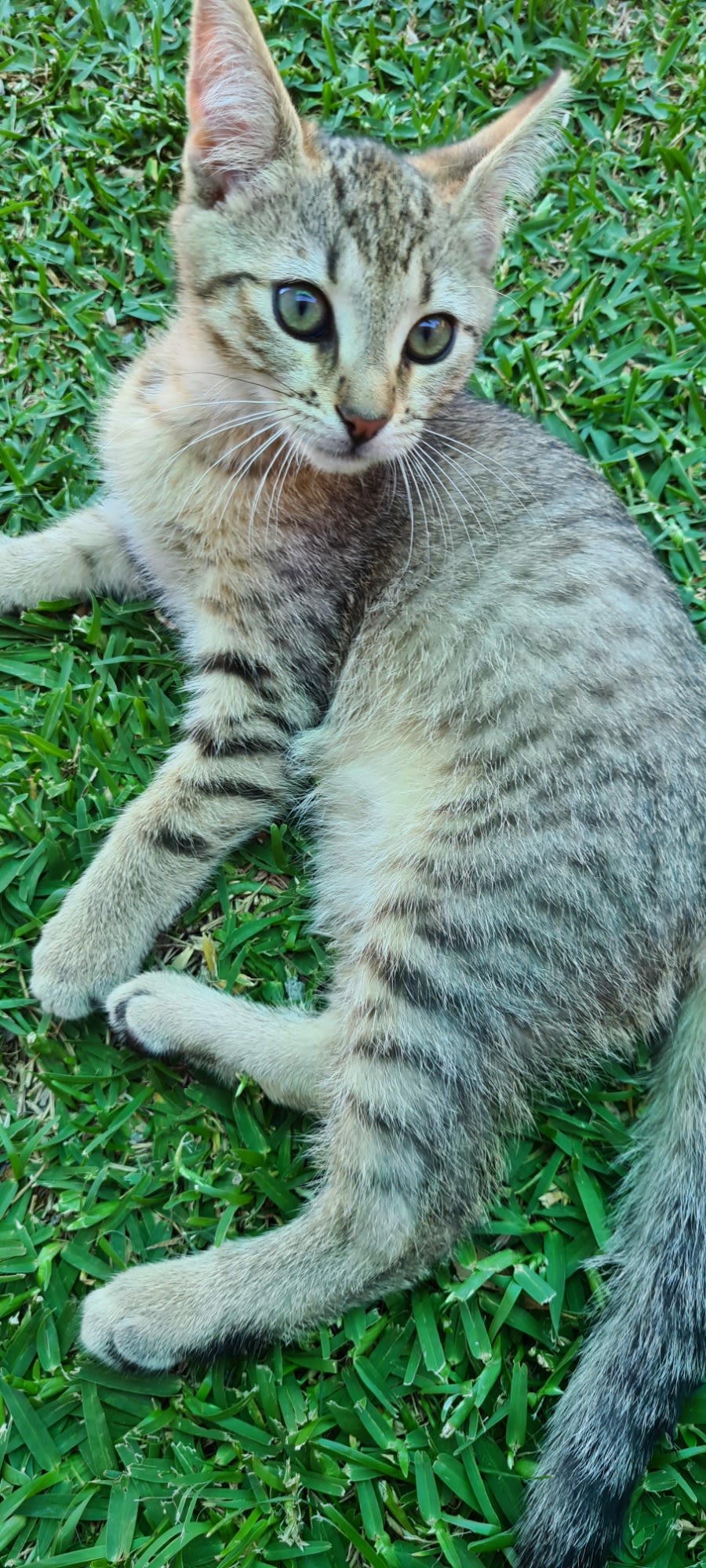 Bandit is a super playful little kitten. He absolutely loves to play with his toys. He loves to run and jump and will keep you entertained with his funny antics. Once he is worn out he loves to snuggle up on your lap and enjoy a cuddle. Bandit is great with people of all ages including children. He is quite scared of new cats and dogs and will take some time to warm up to any new furry friends. With time he does come around though and has made new furry friends while in care.