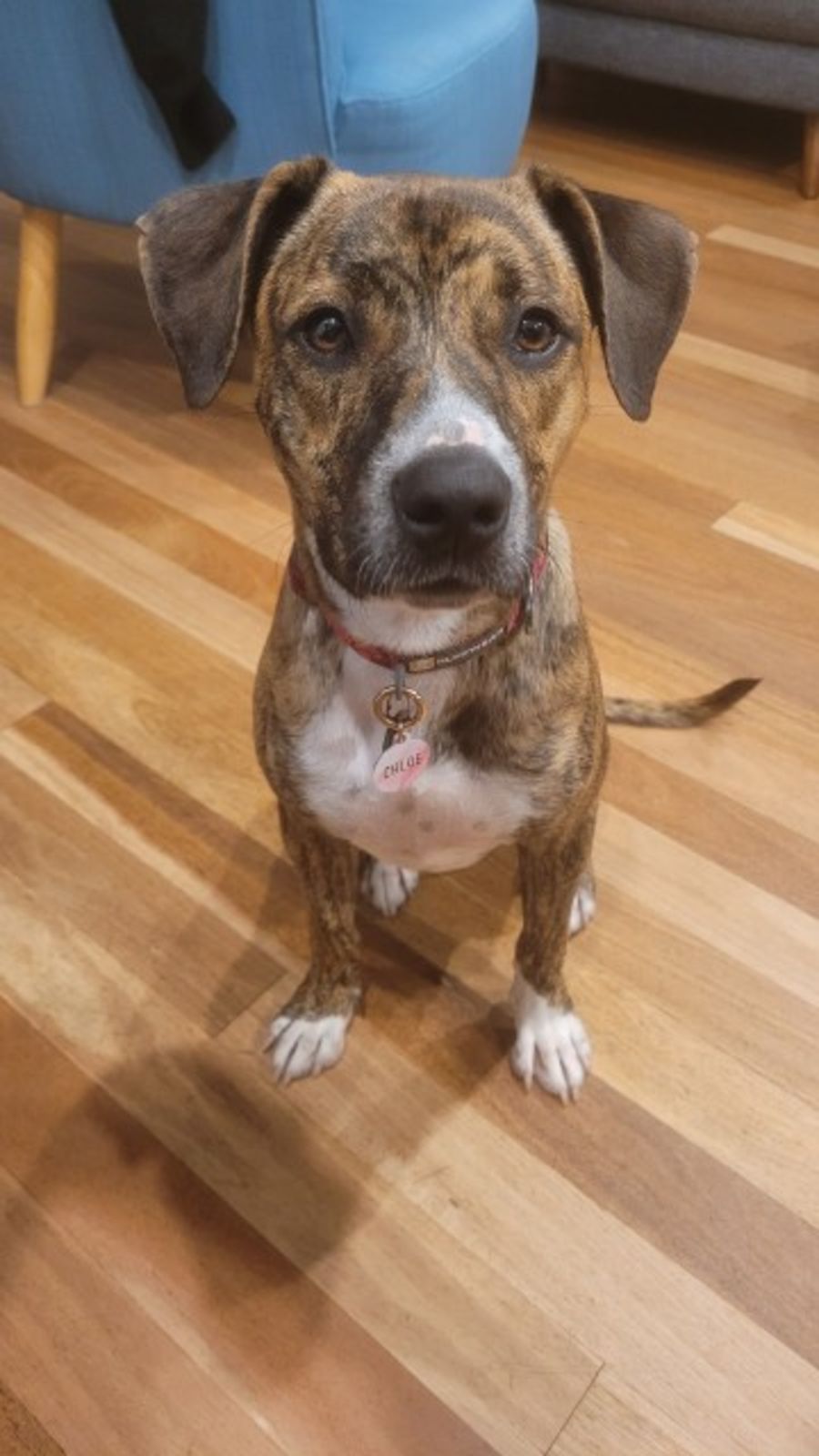Chloe is a sweet and loving puppy who loves nothing more than giving doggy kisses and playing with her toys! She gets excited when she sees people and can be a bit jumpy but she is learning to control her energy!