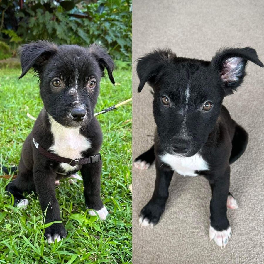 Billy is a very active and playful pup. He enjoys chasing you around in the yard and loves a play with his sister Bonnie. Billy is teething so has started to chew and bite anything he can find! He loves different enrichment activities to keep him busy and occupied and any squeaky and bouncy chew toy. Billy will grow up needing lots of exercise and mental stimulation so a yard would be necessary. He hasn’t been exposed to any children but he does jump up a lot when cuddling and saying hello. He can be a bit needy and whiney when he’s not around his owner but if he is occupied with a snuggle mat or other enrichment toys he is fine.