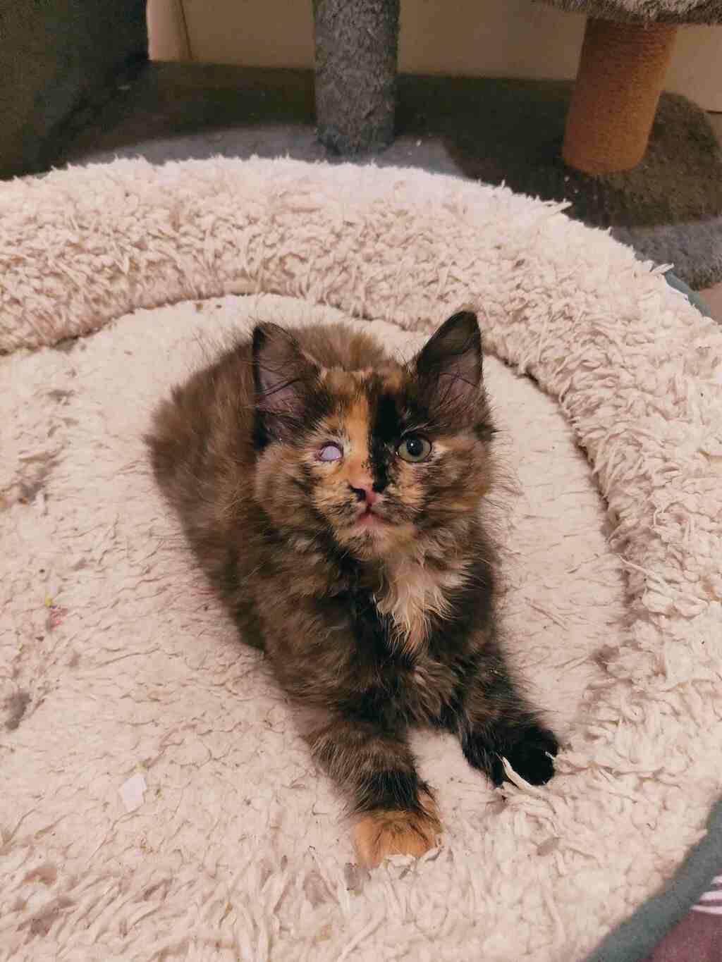 She loves attention and cuddles, but also enjoys her independence. She's the "cool hipster" kitten who is always looking to try something new and is often the first one to approach a new challenge.
