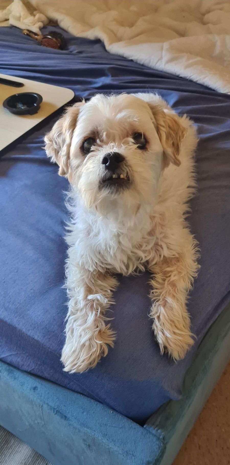 Eddie is a beautiful natured Maltese x. He loves nothing more than sit on your lap and have cuddles. He enjoys short walks and getting attention. Eddie loves other dogs, but is untested with cats or other animals.