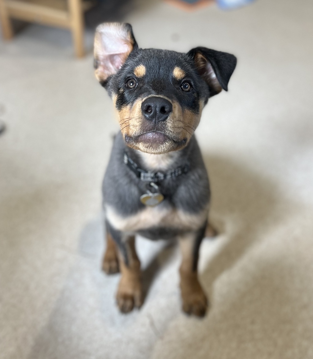 Say Hello to Nazza. This adorable little Rottweiler cross puppy has spent the last few weeks in an amazing foster home. He was lucky enough to be with a carer that invested time into his training, including toilet training and crate training. He is now fully crate trained and almost completely toilet trained, you just have to be quick when he's giving you the signal that he needs to go!