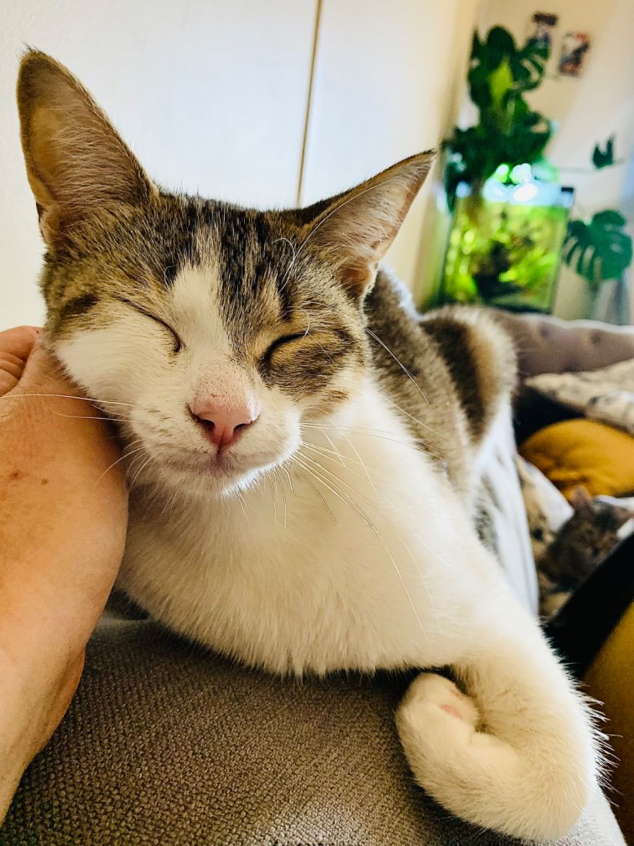 Gem has a very inquisitive nature and loves to set off robot vacuum cleaner and hunt it as it cleans. She is very much an old loving soul in the body of a young cat.