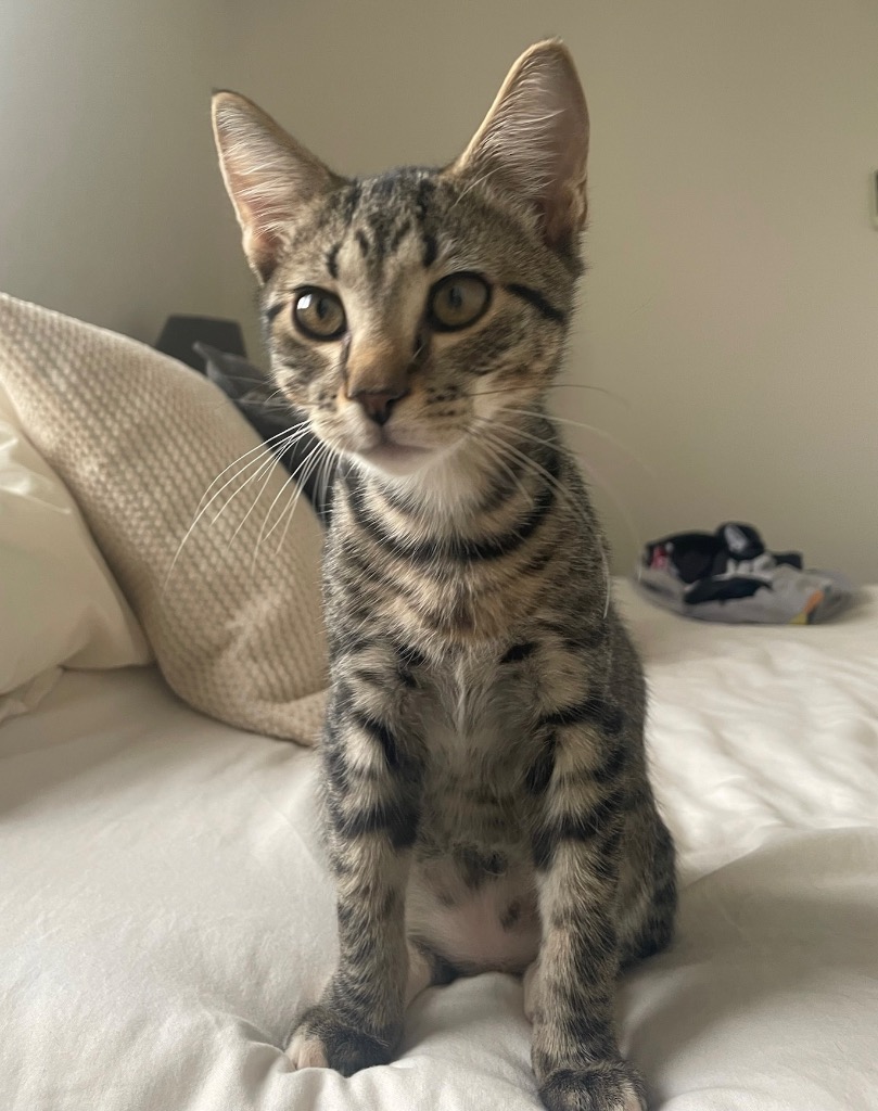 Our little 4 month old, stripy tabby Tori - was spotted living under a residence house with brother Samson (adopted) and sister Arden (adopted).