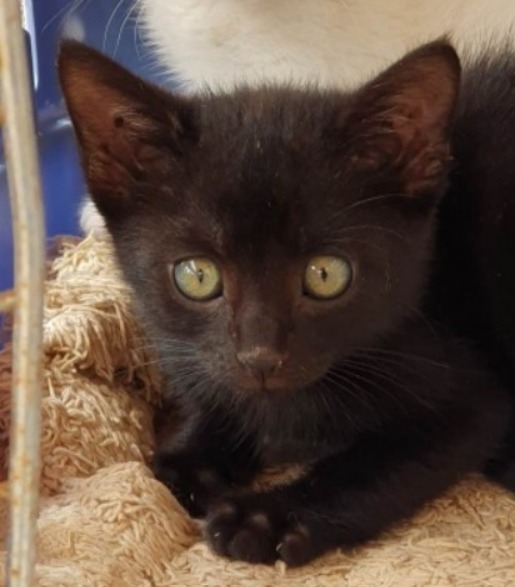 Sootie is a black kitten with a sweet and cuddly personality that loves to curl up with her carers.