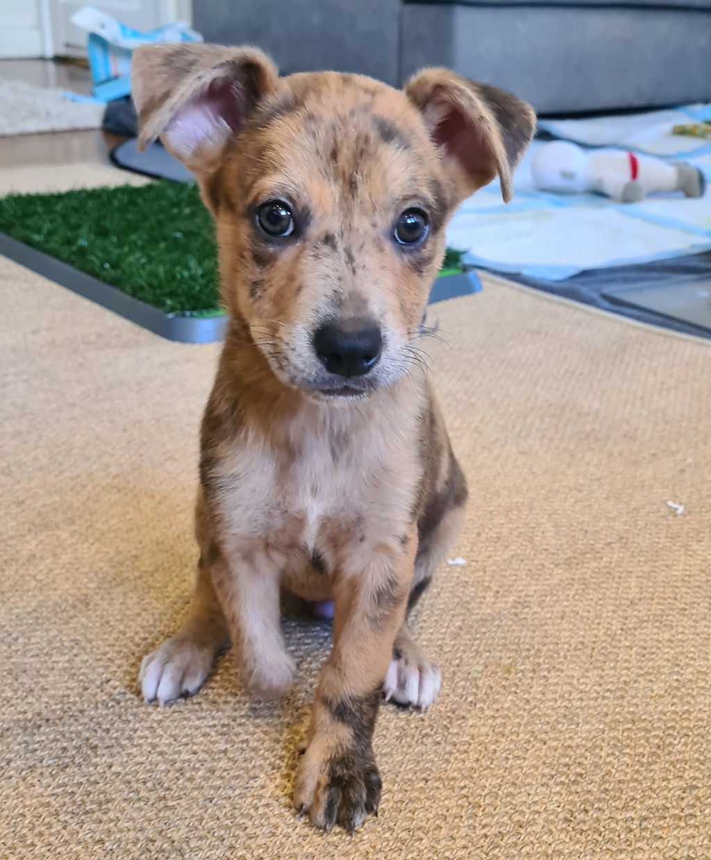 She's a playful girl who loves her toys and is currently teething, so appropriate chews will be really important for her. She loves playing with her brother but is certainly the boss and is sure to tell him if he does something she doesn't like. It would be beneficial for her to continually socialise with appropriate and stable dogs so she can sharpen her communication skills with canines.