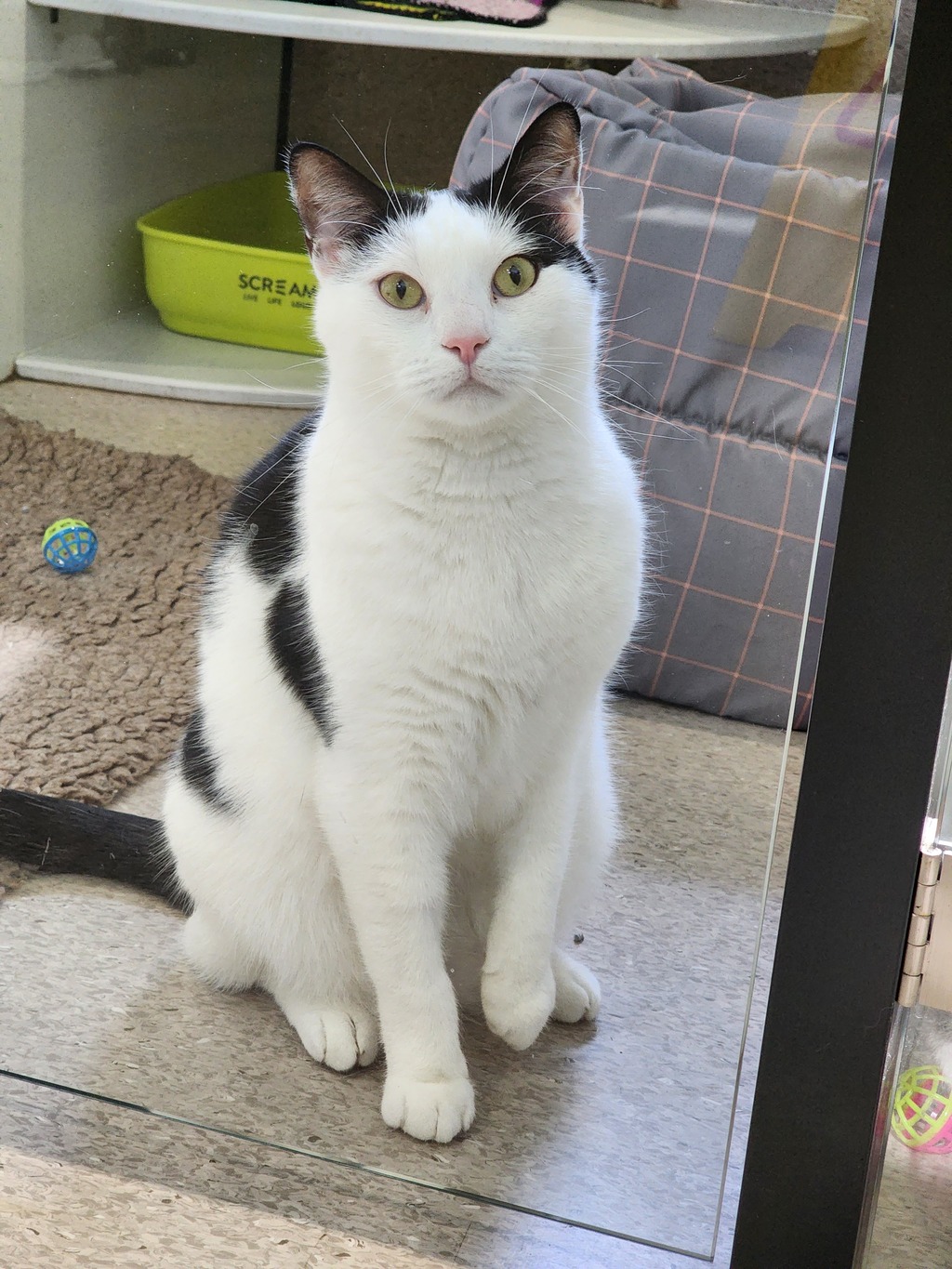 Shadow is a lovely young cat, eager to win you over in the first meeting. Shadow has lived with other cats, so with a proper introduction could be quite social with the right cat in the home. Shadow would make a great cuddle companion and be the sweetest little couch potato you ever met.