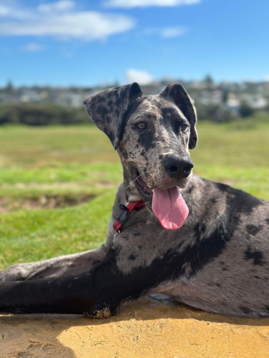 She is never far from her person and loves nothing more than a snuggle on the couch. She has interacted well with children and would be happy to share her home with dog savvy kids as long as they don’t mind having a big dog around (she weighs 28kg) who can be a bit clumsy from time to time. She is social with everyone she meets out and about and will absolutely never say no to some cuddles and pats. Leilani has had the luxury of having her carers working from home, so is building up her tolerance to being left alone- she isn’t destructive or a barker, she just cries for a little while when left. She is happier outside rather than inside when you’re out and her new owners should be able to be around with her to help settle her in properly.