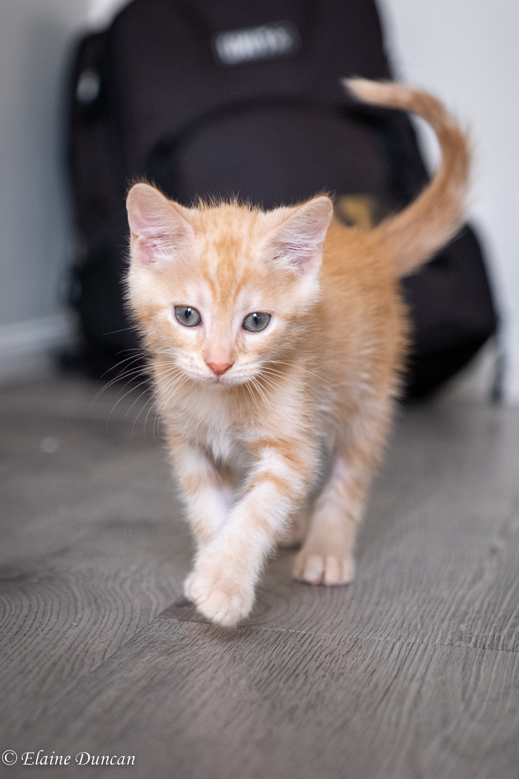 Rupert is full of beans and totally lives life to the full! He is all about fun and adventure. His number one priority is play and quite literally everything can be a toy. He will play with actual kitten toys, of course, but anything he finds is fun. His current favourite is a paddle pop stick! He is also super fond of zooming crazily up and down the staircase.