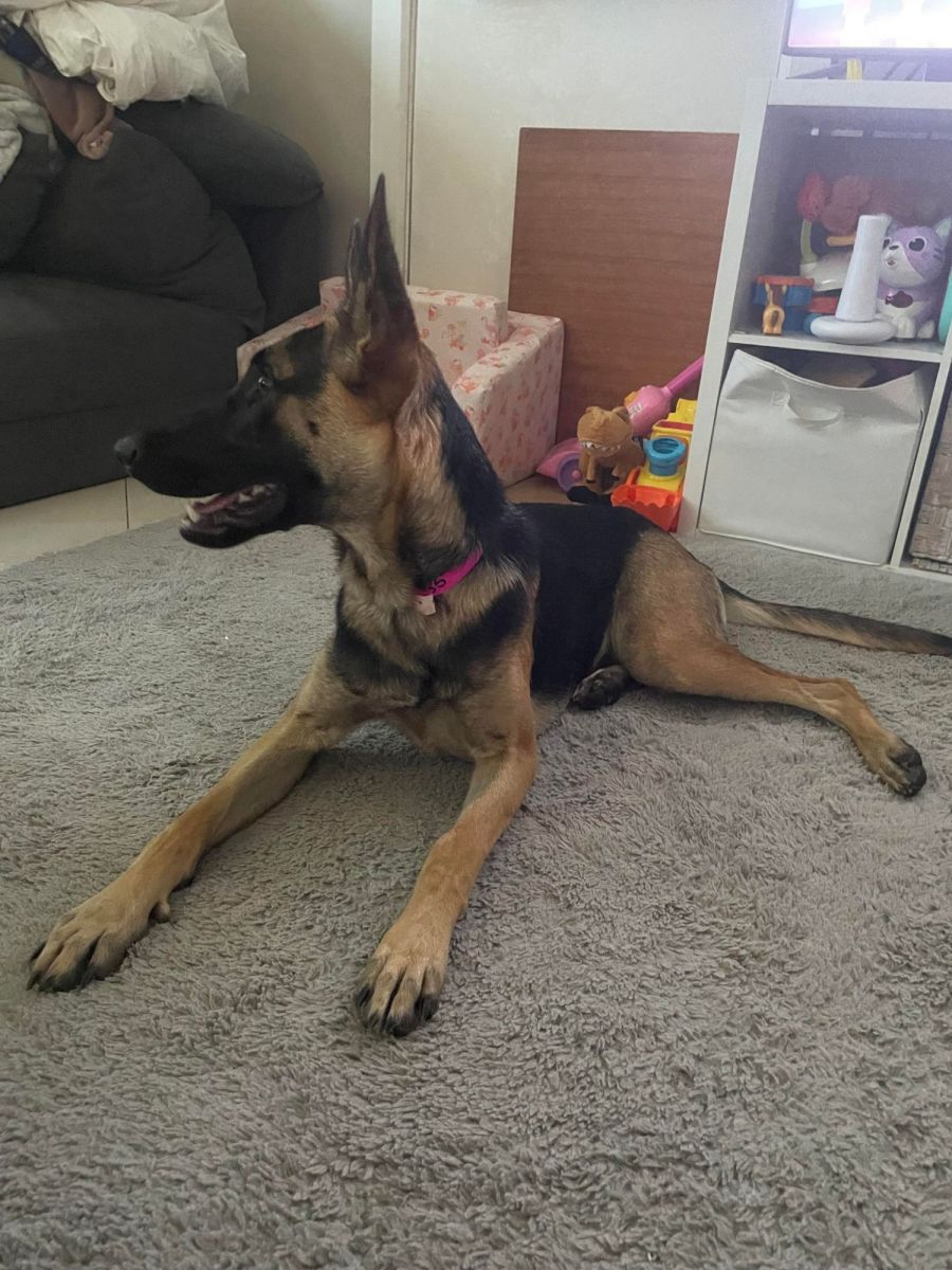 Daisy is a sweet, affectionate girl who is learning to come out of her shell! As she is opening up we have found her to be both a smooch and a playful girl! She has socialised well with both male and female dogs, however she has been observed to be reactive towards cats and so we would recommend she go to a home without one. Daisy will need some training as she can be strong on the lead but she is very manageable. Overall she will make a lucky family very happy!