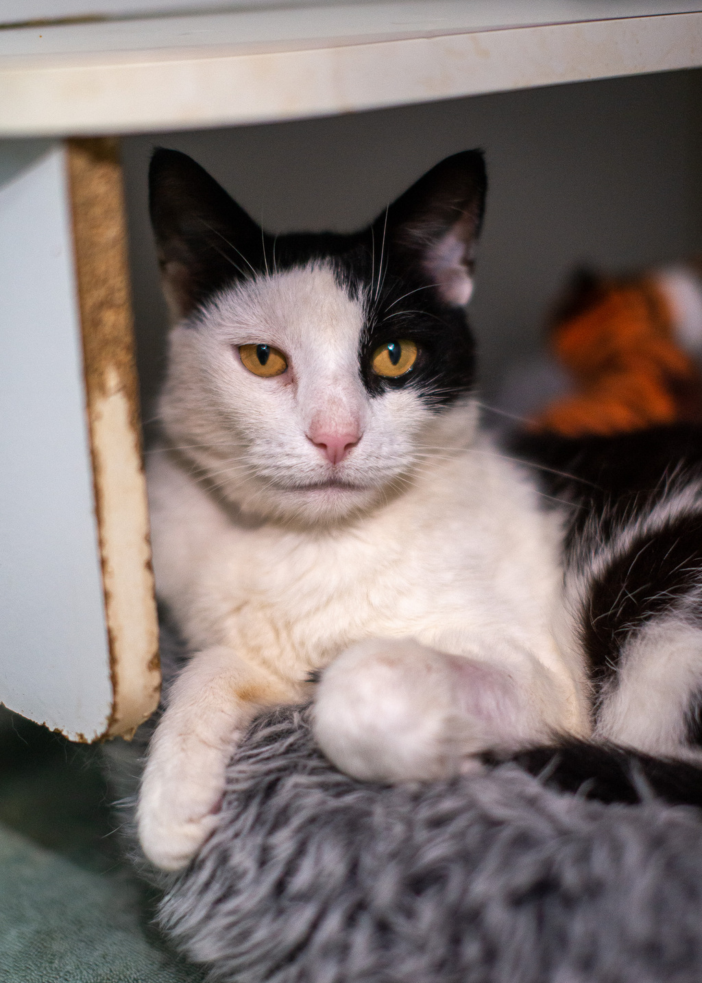 Mazzy is an adorable sweet young girl. Inquisitive and affectionate, this snazzy Mazzy will be one that wins your heart. She is so keen to meet everyone, and meows for the instant connection from everyone who passes her condo.