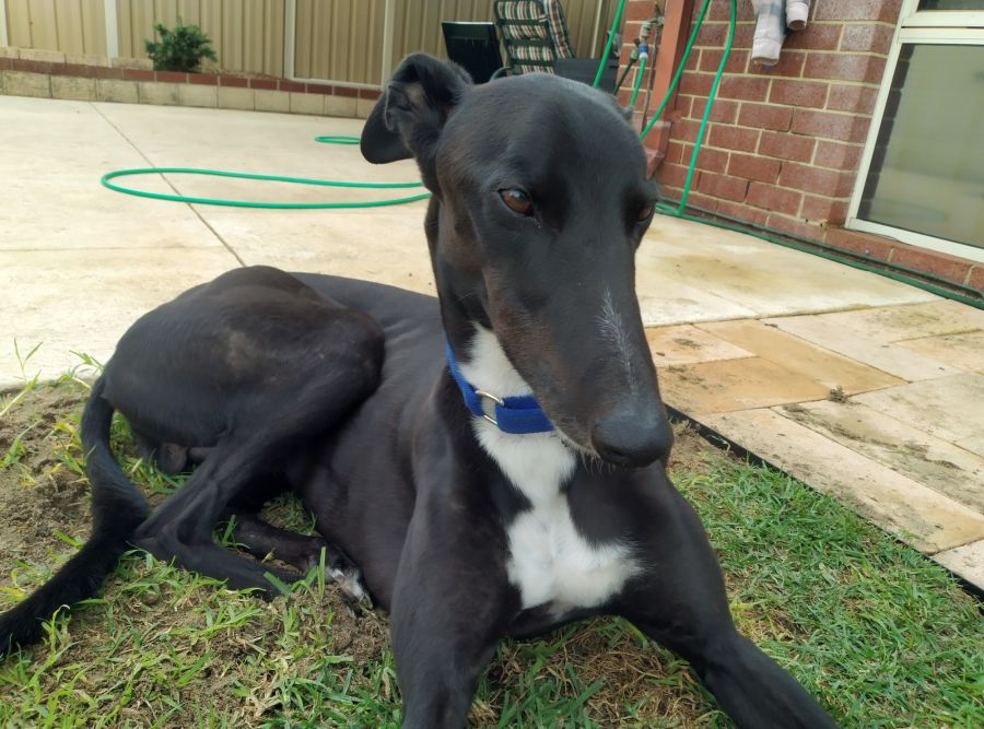 Bobby is a beautiful boy, who is gentle, well behaved and easy to have around the house. He gets on with other greyhounds, and may even be okay with smaller dogs and possibly cats. I will give him a few more days to settle before I test him.