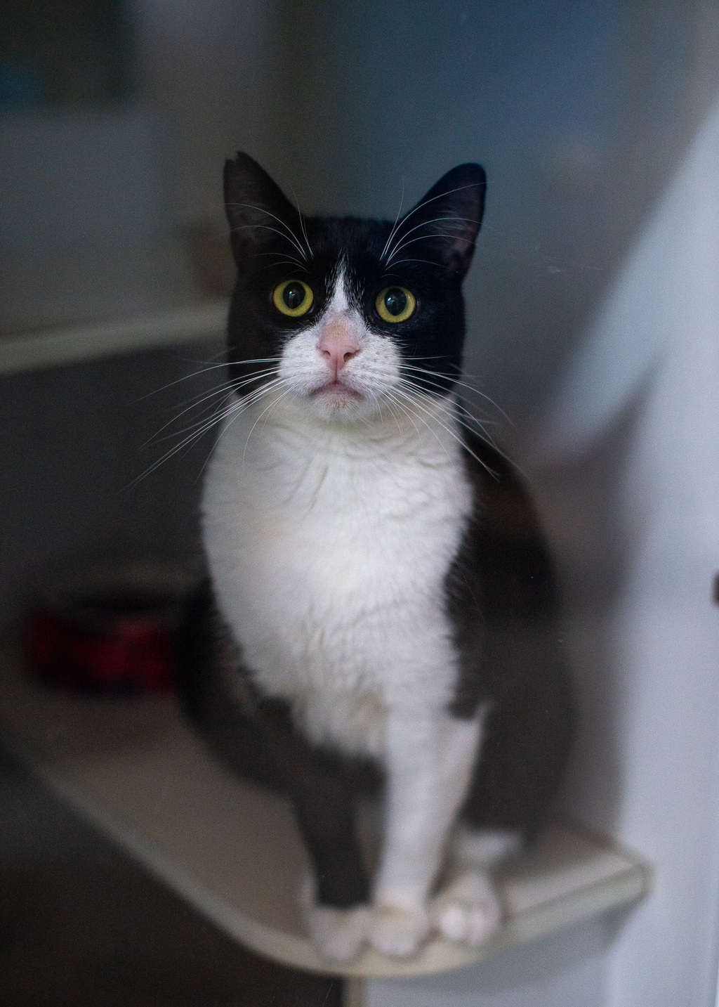 Tommy sits up straight, with his lovely eyes gazing at every passer by. Tommy works very hard at winning over every person who enters his condo, making it very hard to walk away from this stunningly beautiful boy.