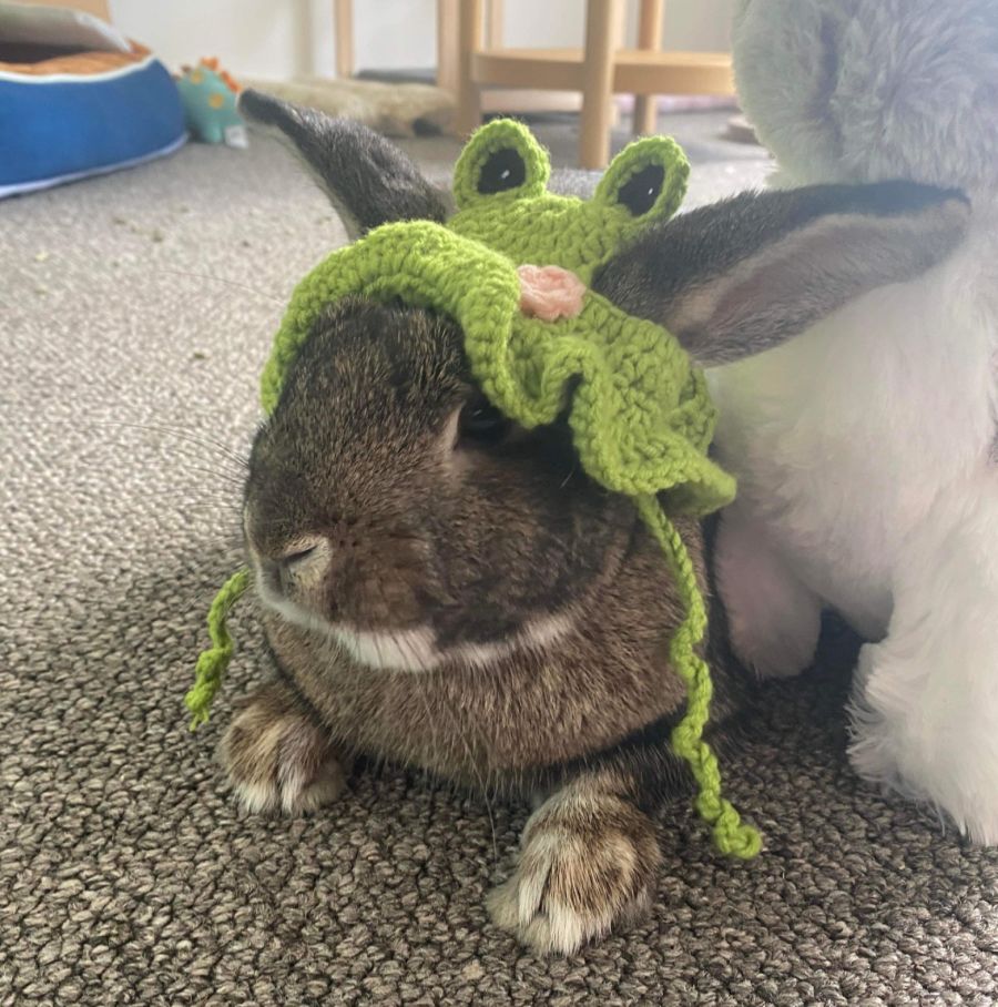 What makes Logan even more unique is his fashion sense. He proudly wears a crochet frog hat that adds a touch of whimsy to his already charming personality. Plus, it's worth mentioning that Logan shares his home with a golden retriever, so he's already accustomed to the company of other animals.