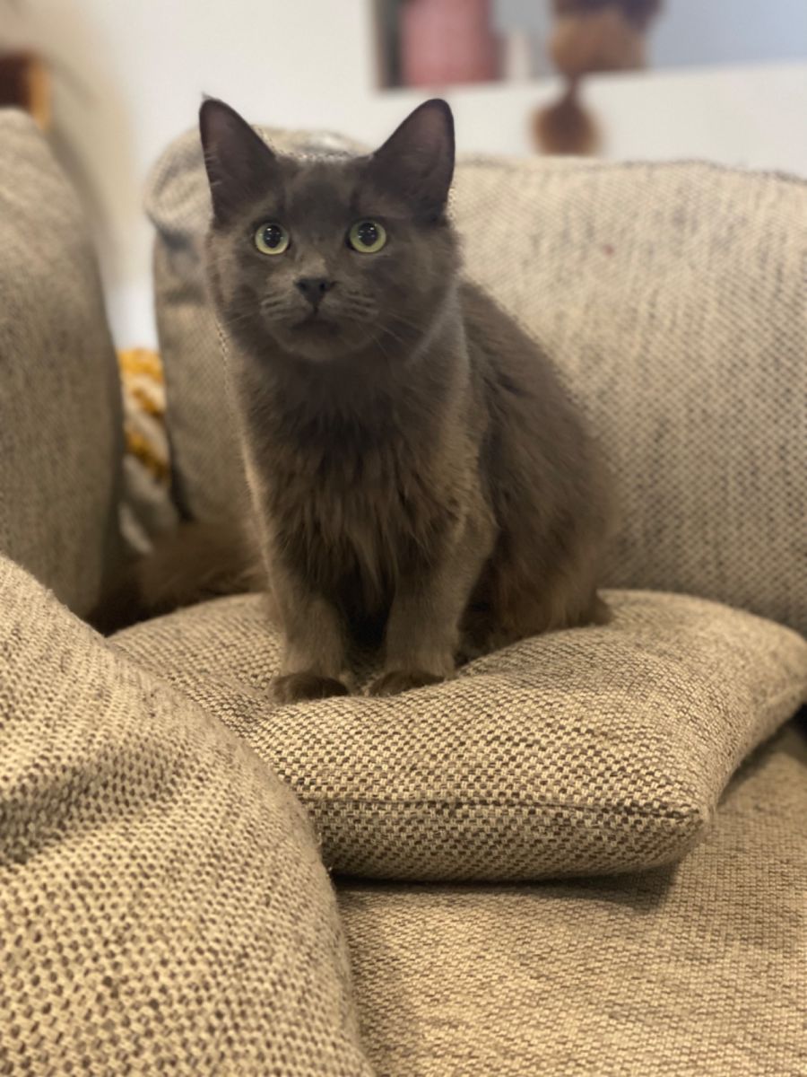 Tootsie is an affectionate and nurturing female cat with a relaxed and cruisy personality. She is beautiful and regal, with her soft blue coat and striking green eyes. Tootsie loves people, kids in particular, as well as cats and dogs.