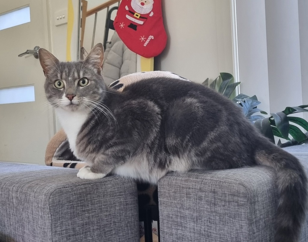 Logan is incredibly friendly with humans-he's the kind of cat who greets everyone with a purr and a head bump, and he loves nothing more than curling up in your lap for a good cuddle. He's also an expert biscuit maker, kneading away happily while you shower him with pats and attention. He's got a big heart and is always ready to share it!