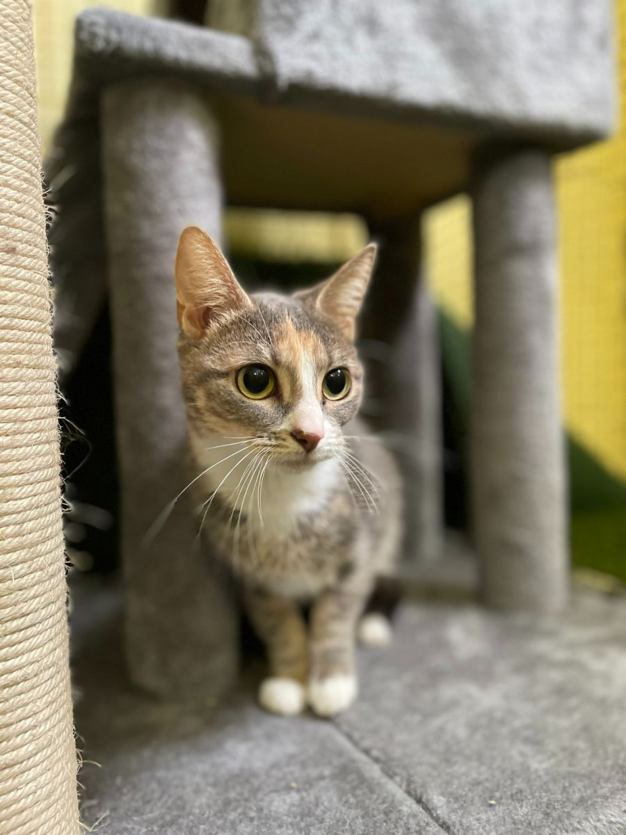 Bessie is the perfect cat for anyone looking to add a loving companion to their home. She loves attention and will happily curl up next to you or in your lap, and if you're in the mood for some playtime, she'll roll onto her back for some belly scratches! Bessie is an incredibly sweet and gentle cat that loves nothing more than spending time with her human friends. She's the perfect lap cat - when she isn't curled up on your lap she'll be by your side, ready to give affection whenever you need it. Bessie is sure to bring smiles and warmth into any home lucky enough to have her.