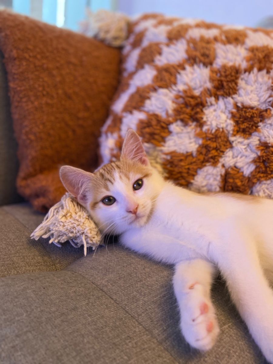 Chicken is an adorable 10 week old female Domestic Short Hair with a beautiful ginger & white coat (which is rare for a female!). She is the perfect blend of playful, energetic and affectionate. Chicken loves to explore and will happily keep you entertained for hours with her antics. She is a super confident girl that would thrive in almost any household.