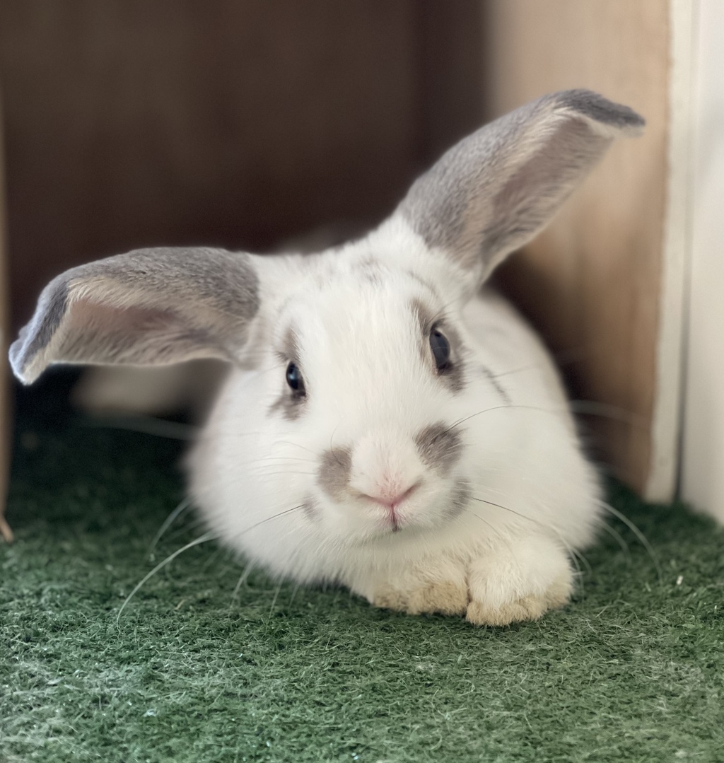 Pheonix, currently living in with sister Vision, was born in care and has remained a placid and gentle rabbit throughout the entirety of her life with us. Pheonix will lie down, splayed out, enjoying pats and gentle strokes from handlers. Pheonix would make a great pet for first time pet owners or children learning to care for a new fluffy friend as she is so snuggly and easy to handle. Pheonix enjoys living with her sister, Vision, however they aren't bonded, so if you already have a rabbit in your home needing a friend or are only able to take on one rabbit, Pheonix wouldn't be too upset to part ways. However, if you don't currently have any other rabbits and are able to take 2 it is always nice for them to have friends and the bonding process between rabbits can take some time, therefore adopting two friendly rabbits who already enjoy eachother's company makes this process much easier.