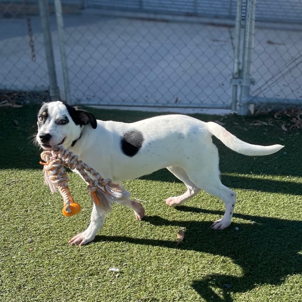 Missy loves playing fetch with a rope toy and a ball, running around the yard and snuggling up for cuddles.
