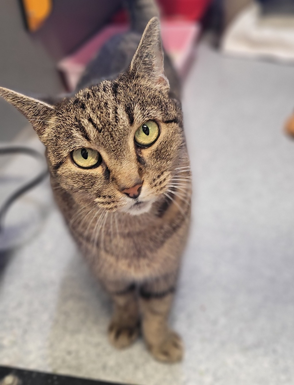 Meet Gloria: a charming feline friend with a laid-back personality and a love for food. This affectionate cat is the epitome of relaxation, content to lounge in cozy spots around the house and enjoy leisurely meals. With her easygoing demeanor, Gloria is a delightful companion who adds a touch of calmness to any home. If you're seeking a cat that knows how to savor life's simple pleasures, Gloria is the purrfect match for you.