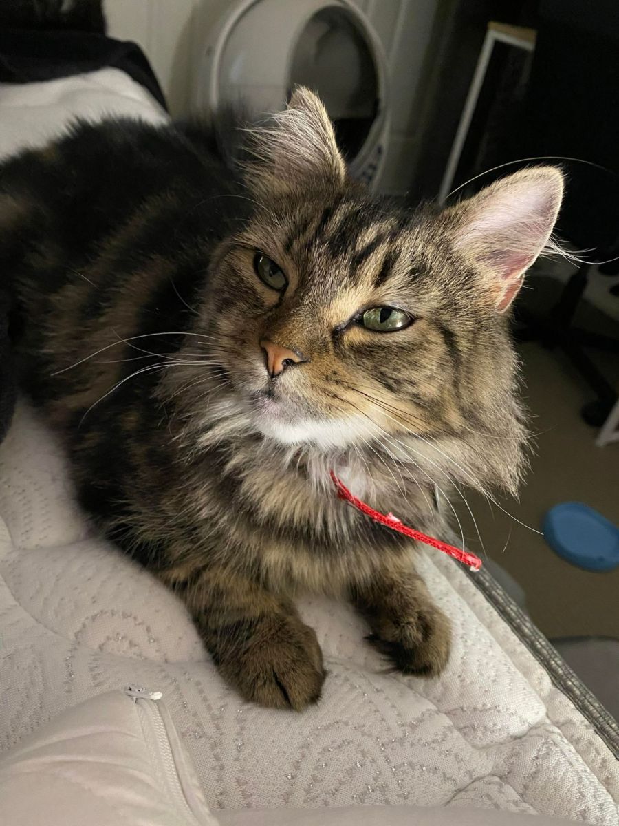She is good with other cats and loves to play. Her favourite spot to nap is on your bed and she looooves face scratches!