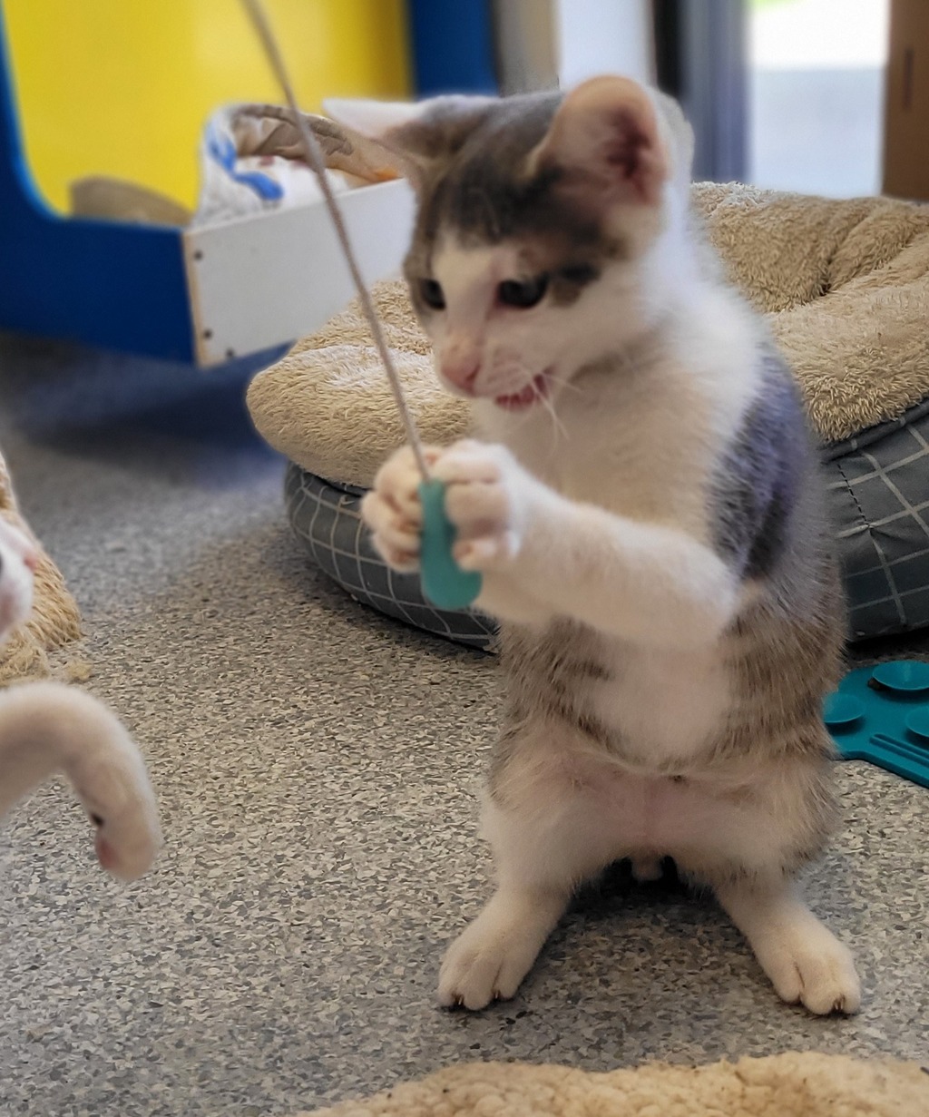 Do you like Dinosaurs? Because I loooove them! They are just so fascinating, and you can never learn enough! I'm on the hunt for a place to call home and a human to love and adore. As you've read this far, perhaps you're 'the one' I'm searching for? I love to romp, play, lounge around, sleep, eat, repeat. I'm a great listener too, so when you come home from your outings, I can perch nearby and you can tell me all about what you've been up to. And maybe we can even watch some dinosaurs on TV together! To keep me safe and healthy, I'm looking for an INDOOR lifestyle. This suits me just fine. I'll simply spend my time play with my toys, taking leisurely strolls to the food bowl and finding warm windowsills to laze on while I recharge my batteries... then I'm ready to roll again! My adoption fee includes me, my desexing, microchip and health check and makes sure I'm up to date with vaccinations, worming and flea treatments!