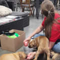 Floyd happily stays outside daily playing with Norman while their carer works.