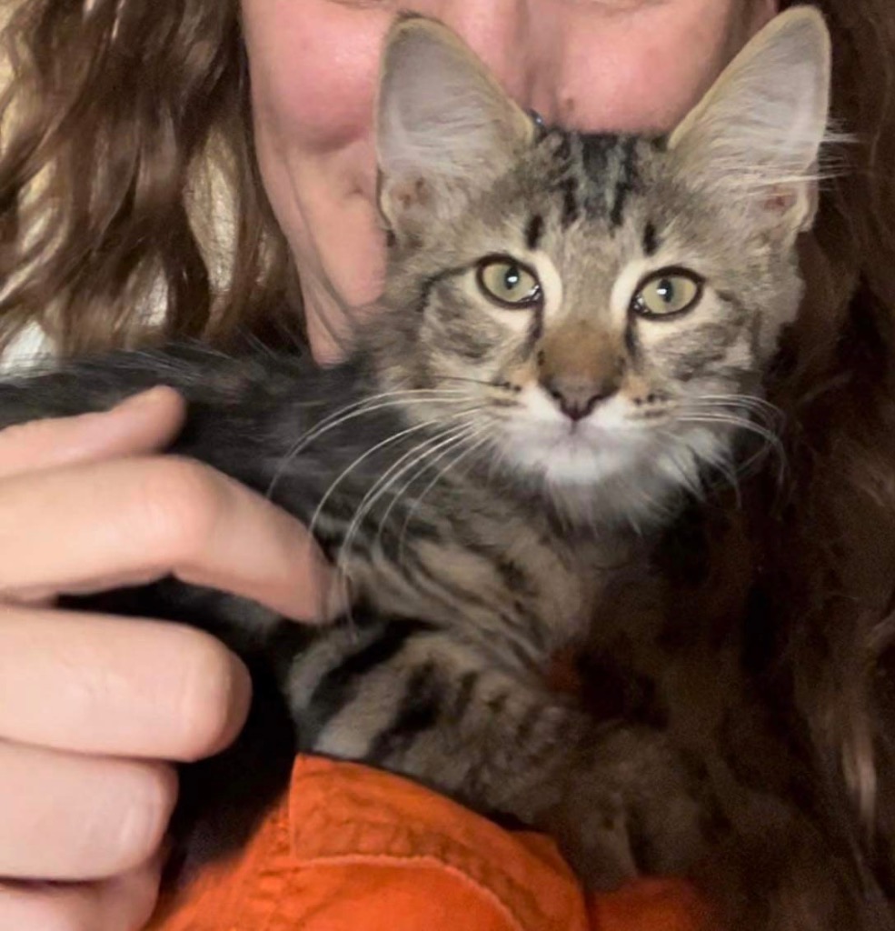 He is currently in foster care with his mum Willa, other shy foster kitten Bessie and 3 resident cats. He hasn't yet played with the big cats but doesn't mind when they come to say hi!