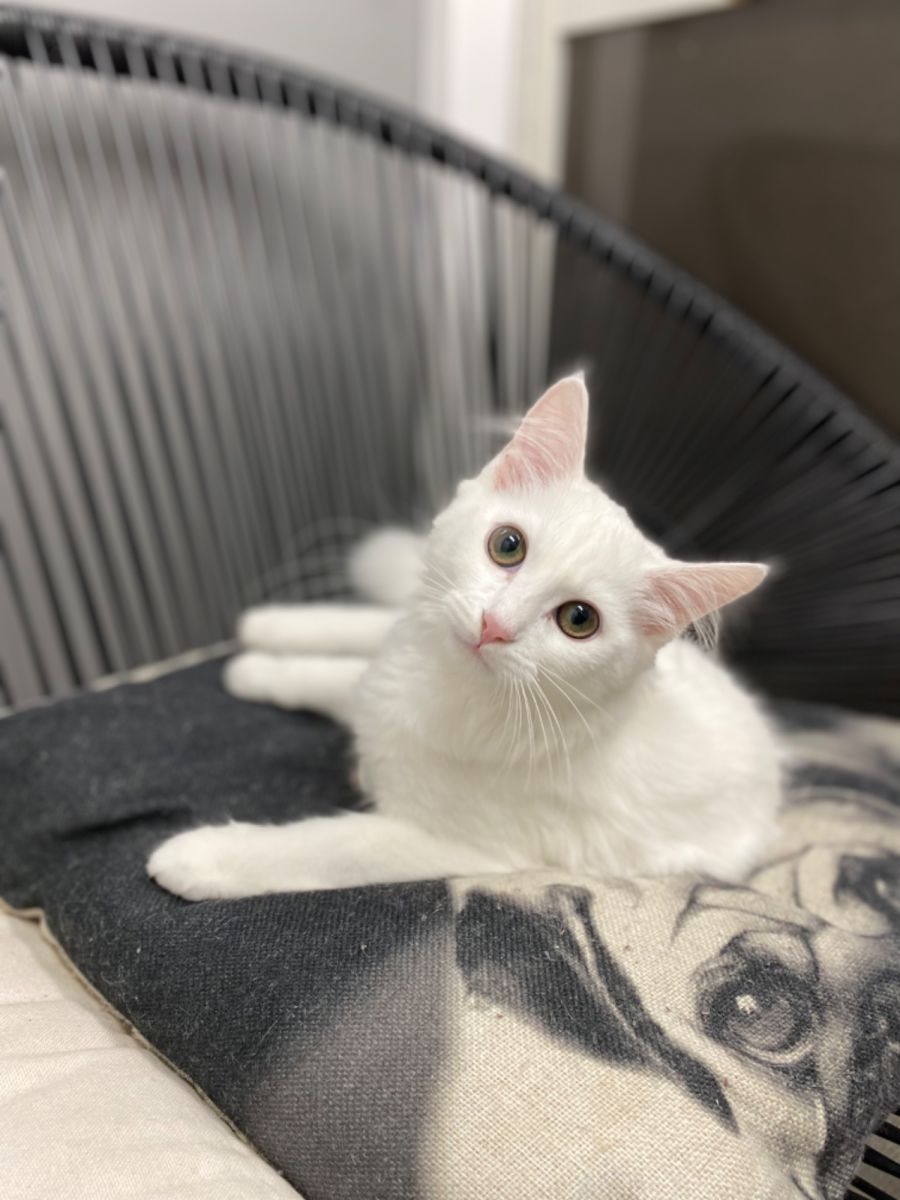 Cotton's beautiful white fluffy coat will need regular brushing to keep him looking and feeling great. Due to his white coat he will also need to be an indoor only cat to avoid the risks of dangerous skin cancers from the sun.