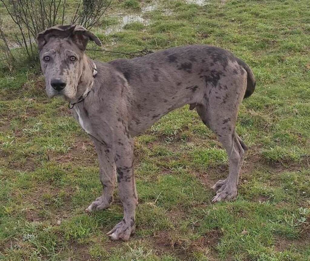 Seriously though, this beautifully natured dog loves playing with soft toys and other dogs. His Great Dane side is shown with his high energy moments followed by lots of sleep and growing. Creed is very gentle with his human baby brother and has not chased the cats or horses where he lives. Creed is house trained and will sit and wait for his food. If you would like more info about this beautiful big goofy boy, please call his carer Lucy on 0429 197 174. Please leave a message if Lucy doesn't answer as phone service there can sometimes be interesting.