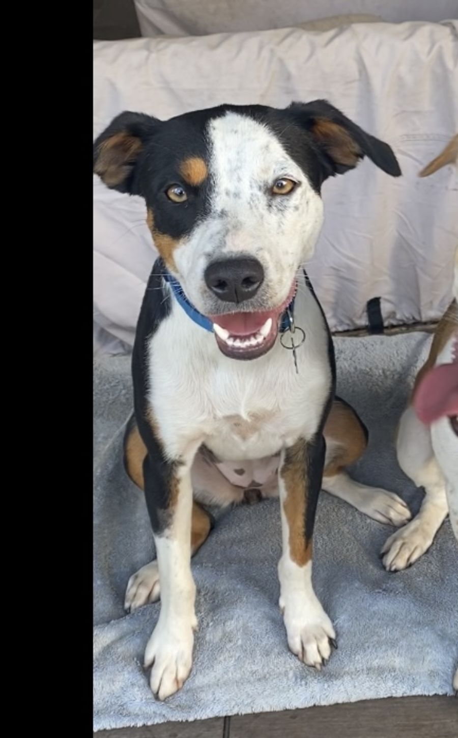D843 Princess is an energetic 10-month-old pup with loads of love to give. She's a Staffy X Cattle X Kelpie mix, and despite her small frame, she won't grow too much bigger. Princess loves spending time with her sister and her humans, always cuddling up to them. She's a bit more timid than her sister, but once she warms up to you she's incredibly affectionate!