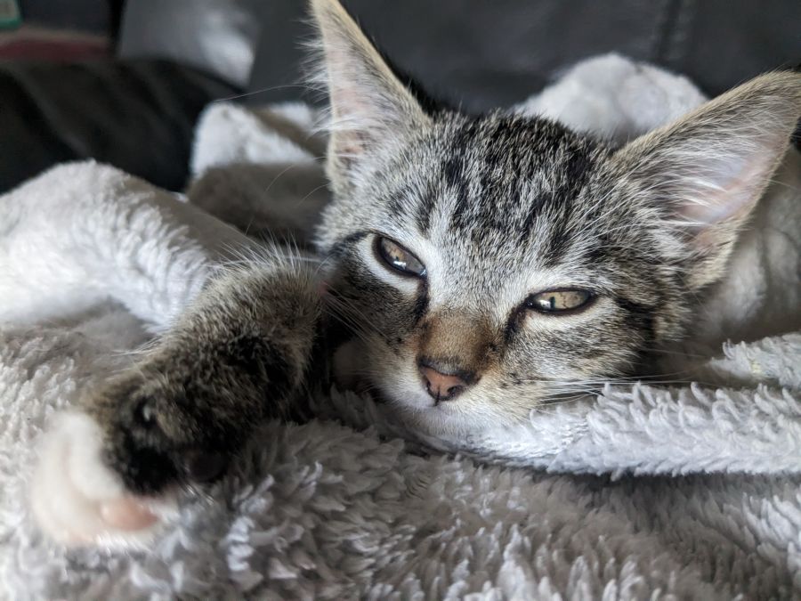 My foster Mum calls me a crazy, loving and playful furball. I can be shy at first, but with patience and understanding, I'll soon become your best friend (especially if you have food, special treats and a nice warm bed to lounge in). I communicate my needs clearly- if you pay close attention, I'm sure we'll get along just fine. Some of my favourite things are eating, sleeping and zoomies. I also enjoy playing and snuggling with the resident cats. The resident dog intrigues me, but has me running for the hills with her big, scary bark!