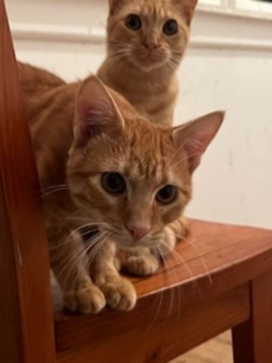Seven month old, loves to follow you around and sleep on your pillow, he is a great companion and is very playful. Big duffus. Loves food