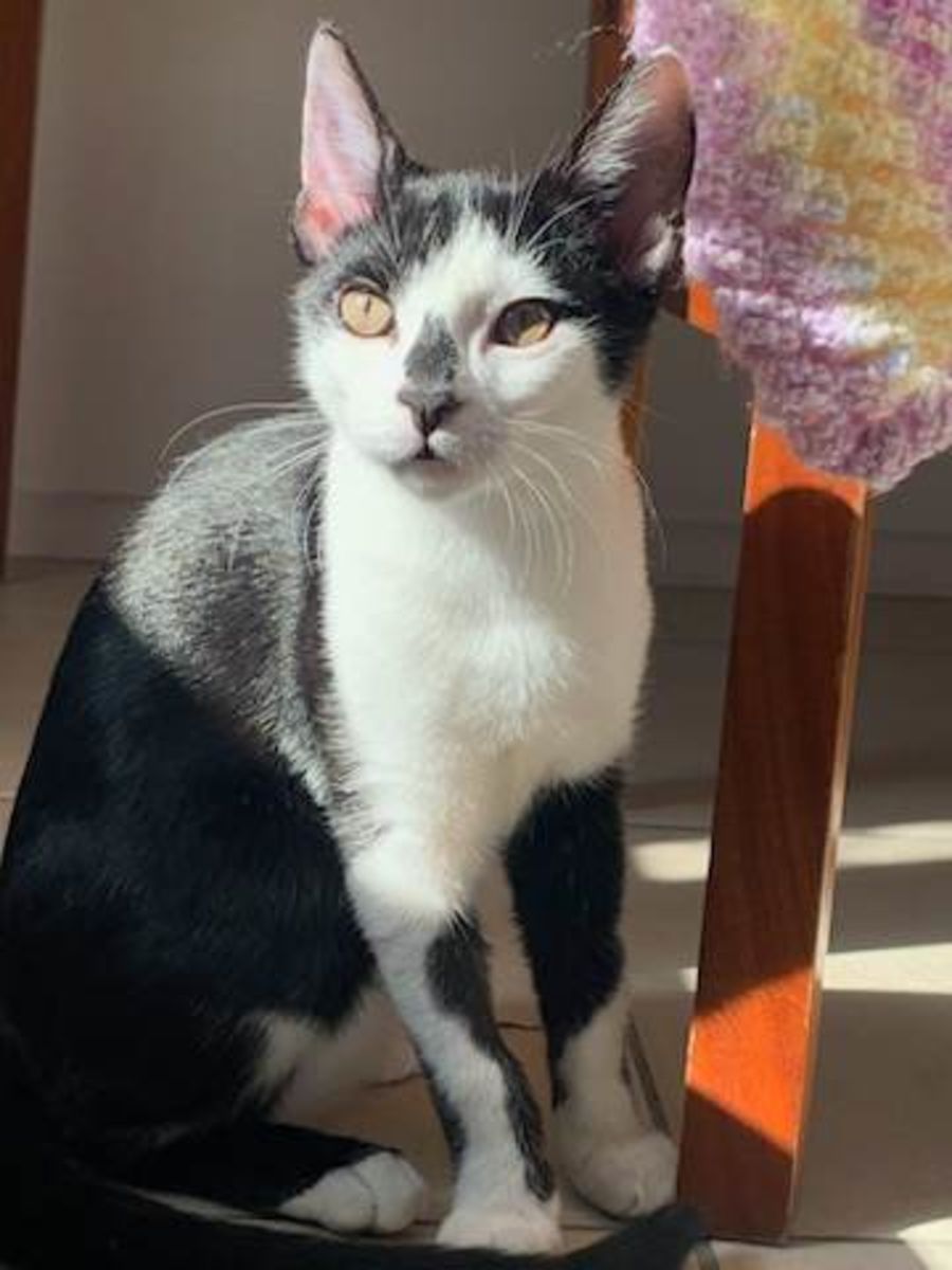 Gucci is a playful, lovable kitten who is very active. She loves to play and run around the house. A master at climbing the scratch posts and a real “spider cat”!!