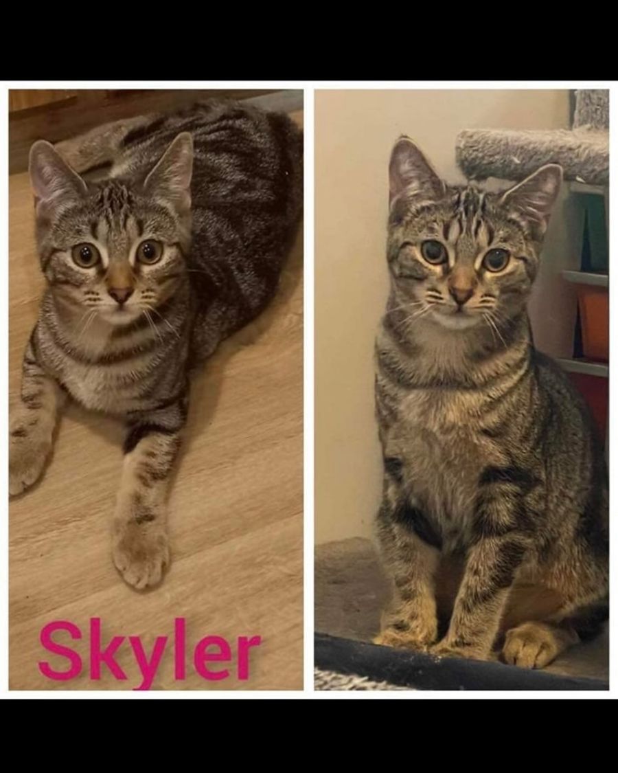 Skyla is an adorable tabby female kitten who loves to play and show her affection. She is a true smoocher, always looking for a warm hug or snuggle. She loves to explore and take in the world around her, but she also loves to curl up in your lap for some cuddles.