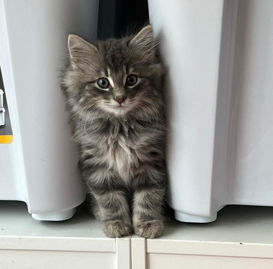 Humphrey has amazing markings. He likes to know you first before he falls in love with you, once he does he's super chatty. Humphrey and his brothers are always on the move, scampering and pouncing on toys and exploring every nook and cranny they can find. Despite their energetic nature, they love nothing more than to curl up in a cozy spot for a nap, purring contentedly. It's hard not to smile when you're around such charming little balls of fluff!